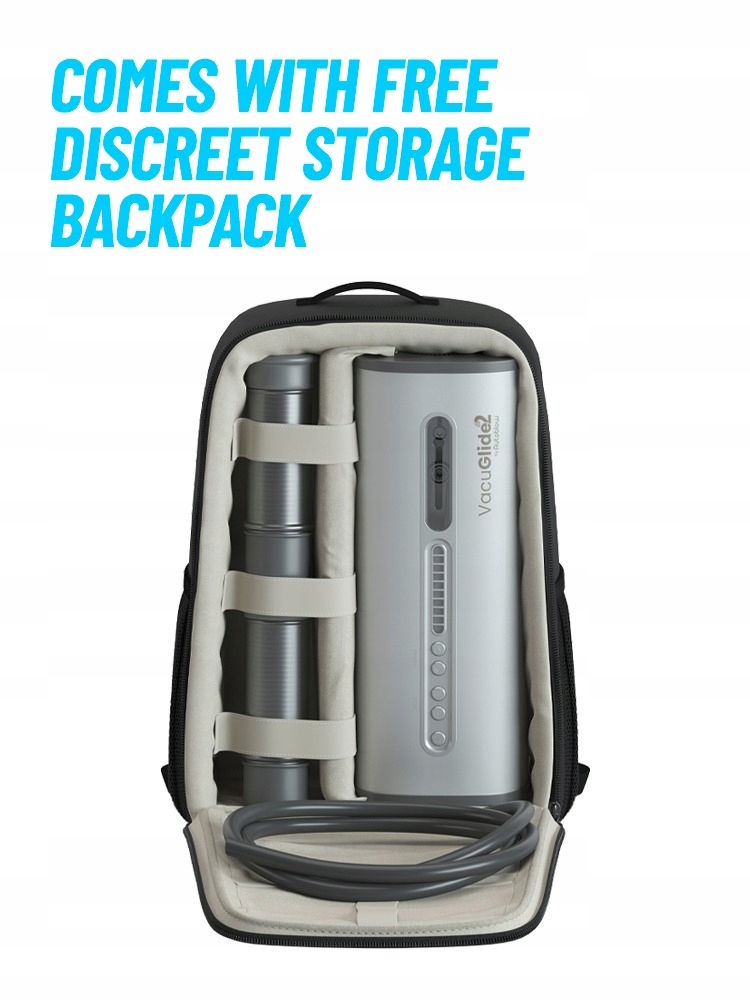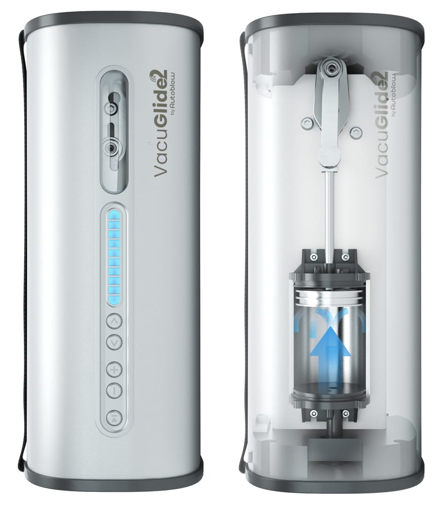 Cichy masturbator VacuGlide 2 od Autoblow, który łączy wspomagane podciśnieniem ruchy chwytające i ślizgowe z silną mocą ssania (dojarka).