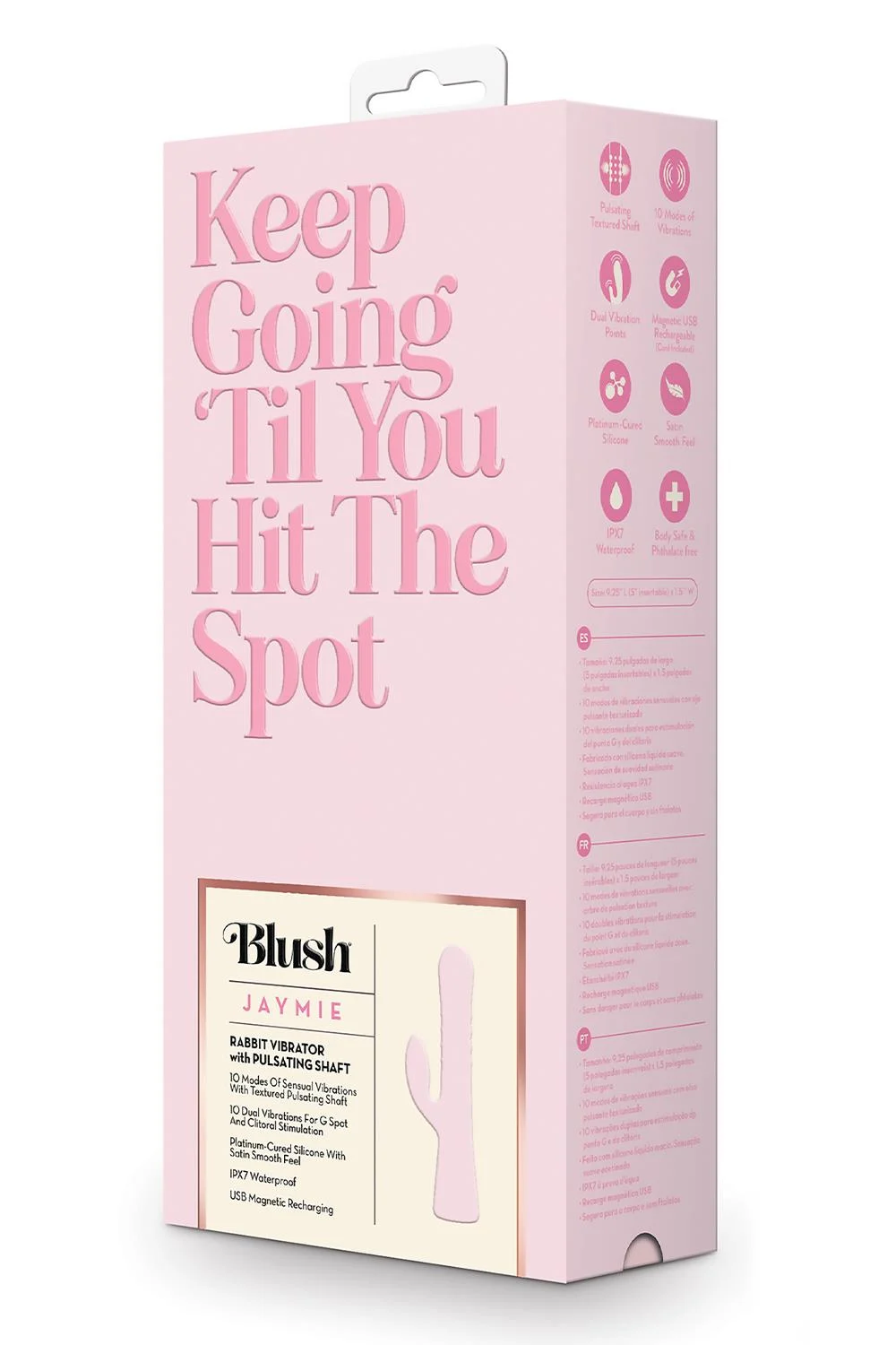 Wykonany z bezpiecznego dla ciała silikonu utwardzanego platyną, Jaymie jest satynowo gładki na skórze, zapewniając wspaniały komfort podczas użytkowania. Dzięki wodoodpornej konstrukcji IPX7 i magnetycznemu ładowaniu USB, jest gotowy towarzyszyć Ci pod prysznicem lub w wannie, aby urozmaicić zabawę. Jaymie jest gotowy, aby trafić we wszystkie właściwe miejsca.