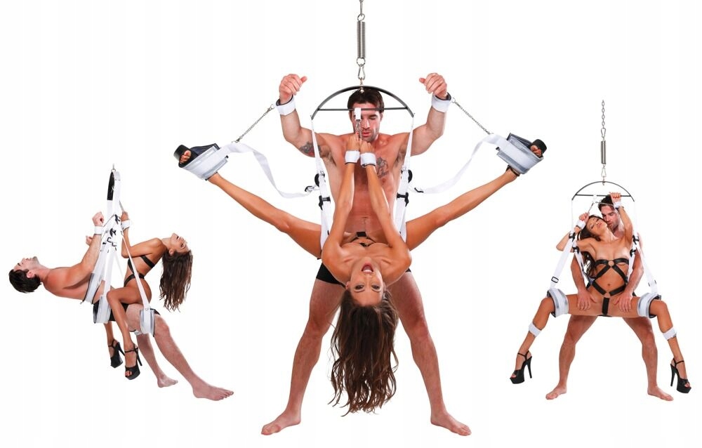 Ta miłosna huśtawka z uchwytami na dłonie i stopy pozwala na wyrafinowane pozycje bez konieczności wykrzywiania się.