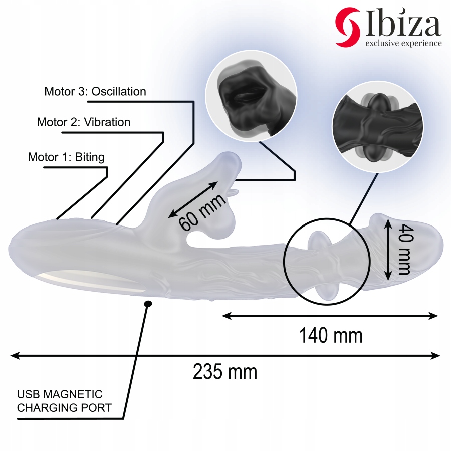 Wibrator i stymulator łechtaczki IBIZA z efektem gryzienia i obracania to idealny wybór dla osób poszukujących intensywnej i różnorodnej stymulacji.