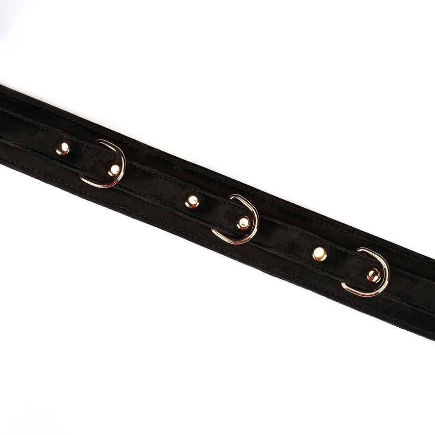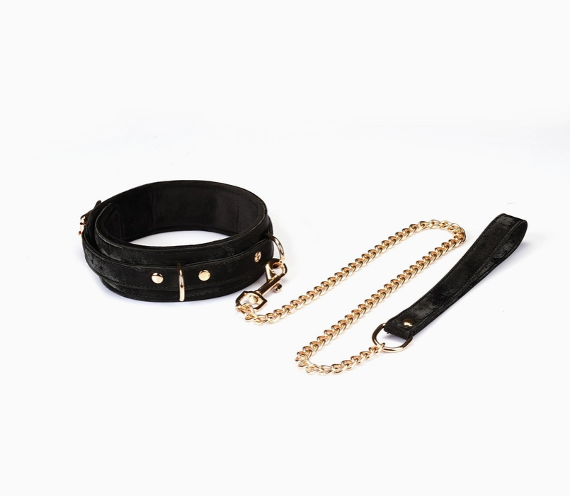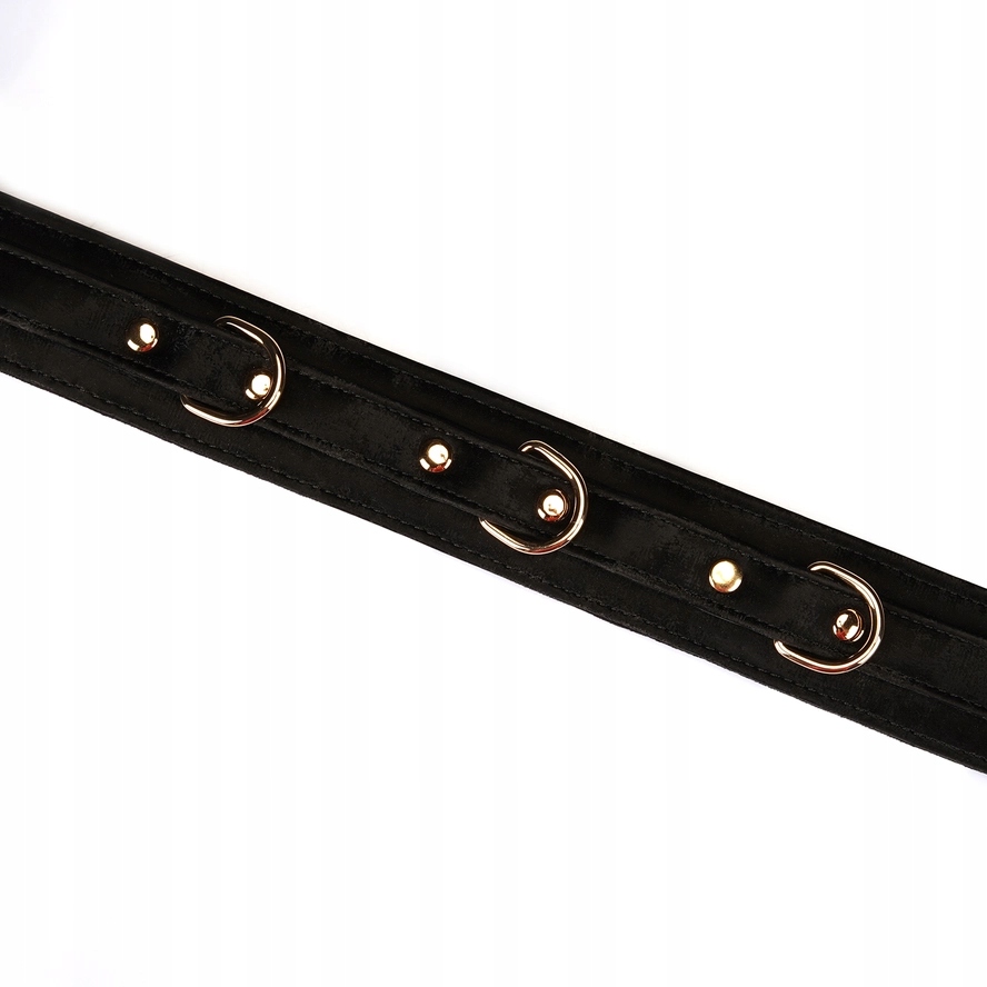 Do każdej obroży dołączona jest również luksusowa smycz na złotym łańcuszku z czarną rączką – idealna do scenariuszy zabaw dla szczeniąt. Smycz ta nie tylko podkreśla elegancję całego zestawu, ale również dodaje nowych możliwości eksploracji w ramach zabaw BDSM. Dzięki niej można w pełni oddać się roli i czerpać przyjemność z kontrolowania i bycia kontrolowanym.