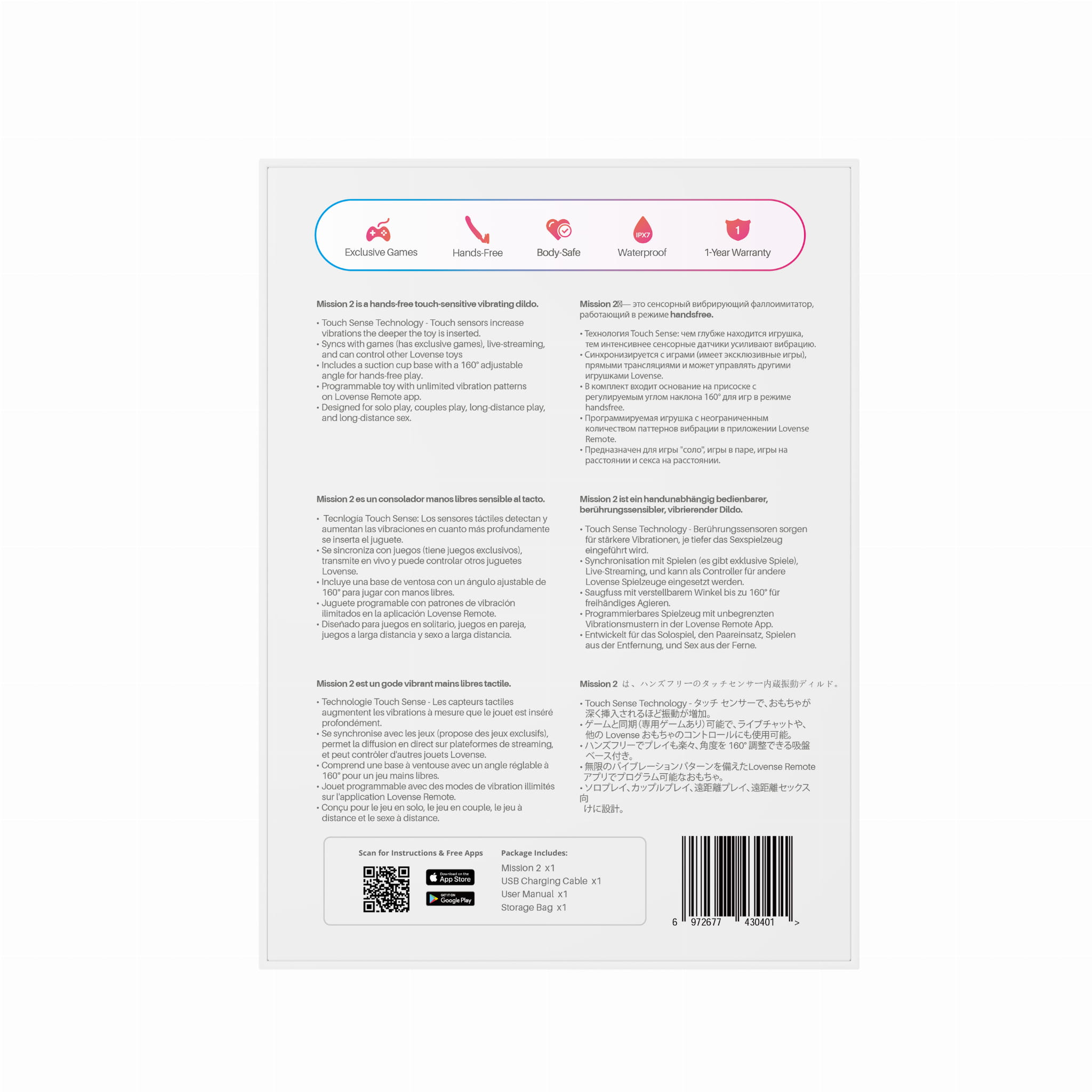 Poznaj Mission 2, zabawkę erotyczną, która na nowo definiuje intymność dzięki innowacyjnej technologii Touch-Sense i potężnym wibracjom.Zaprojektowany z myślą o wszechstronności, płynnie dostosowuje się do gry solo, połączeń na duże odległości i sesji kamerowania, oferując opcje dostosowane do wszelkich preferencji.Mission 2 posiada czułe na dotyk czujniki, które wykrywają głębokość, automatycznie dostosowując intensywność wibracji, zapewniając dynamiczne i spersonalizowane wrażenia. Użytkownicy mogą aktywować ten responsywny tryb lub zdecydować się na sterowanie przyciskami, co pozwala im na elastyczność w sposobie interakcji z urządzeniem. Dzięki trzem regulowanym poziomom intensywności, Mission 2 zapewnia za każdym razem dopasowane doznania, a aplikacja odblokowuje jeszcze więcej możliwości. Im głębiej włożysz Mission 2, tym silniejsze wibracje.