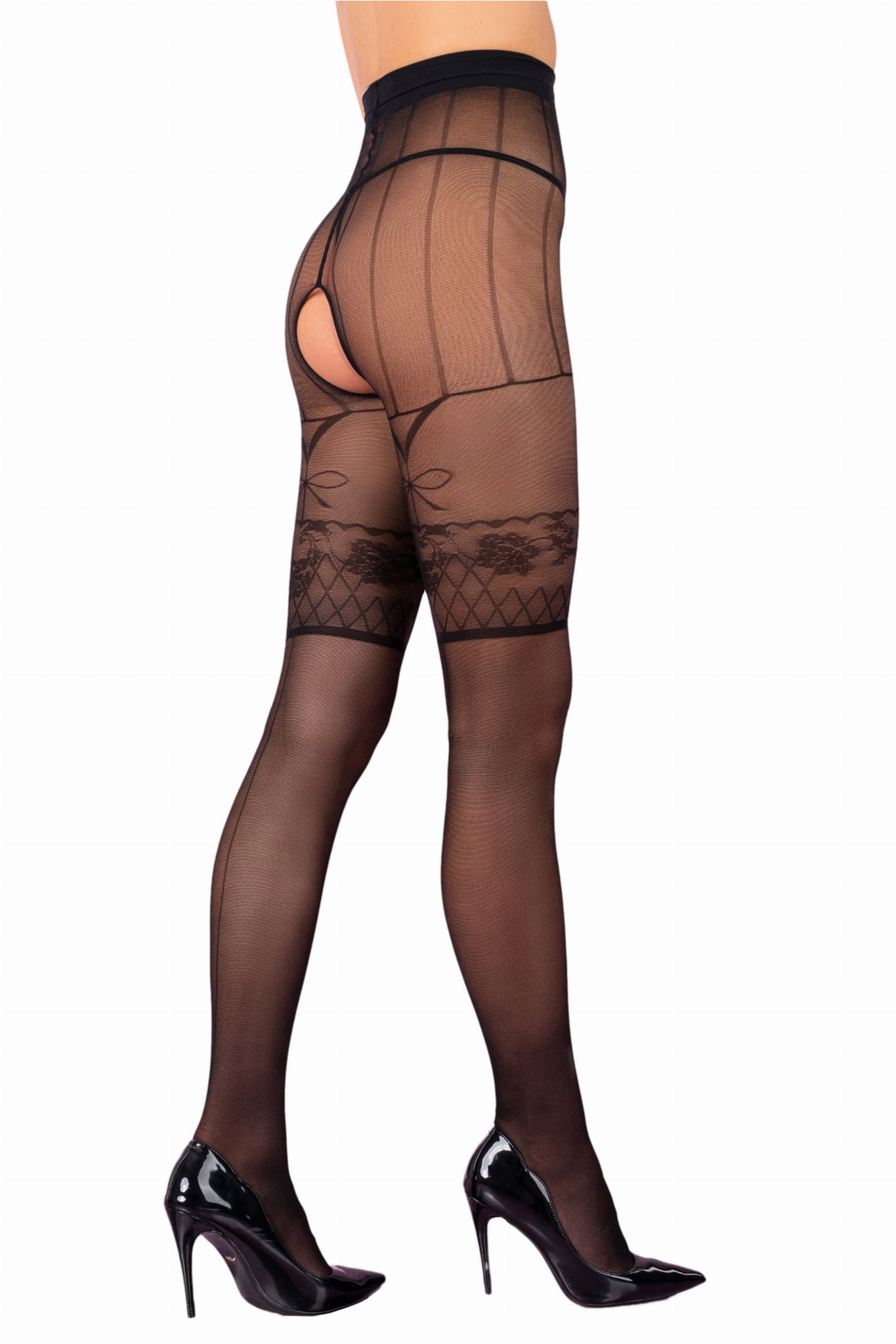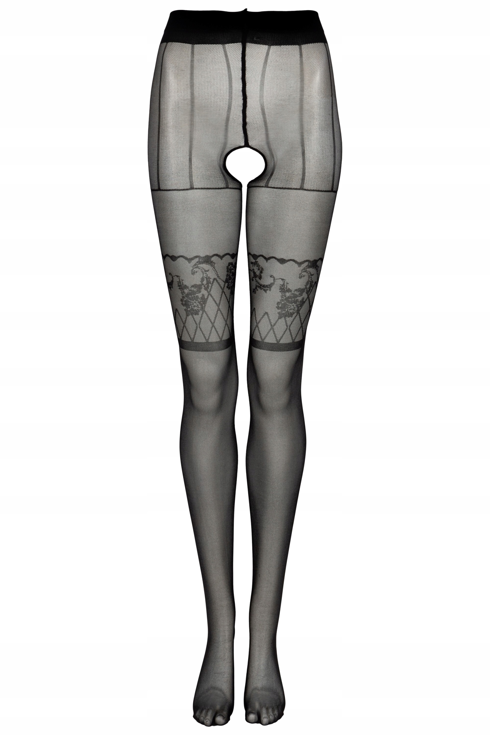 Wykończenie oferowanego modelu w okolicy brzucha jest dostosowane do kobiecej talii, co wpływa na wyjątkową wygodę podczas noszenia. Rajstopy nie posiadają wyraźnie zaznaczonej części majtkowej, co w połączeniu z brakiem bawełnianego klina z pewnością urozmaici życie erotyczne każdej pary!
